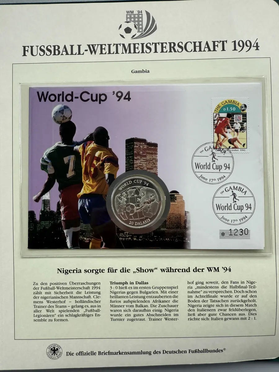 Fußball-WM 1994 USA - Numisbrief Gambia, Silber, 38,6 mm