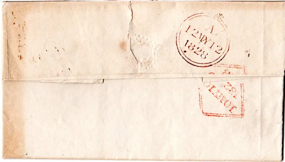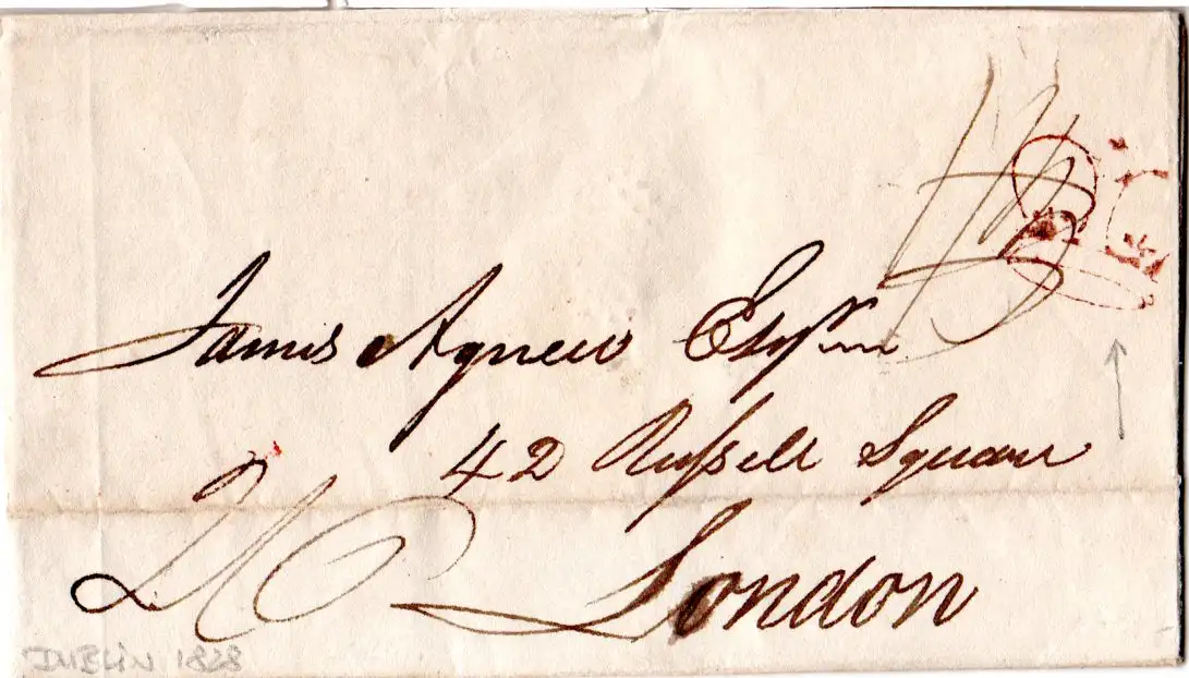 GB 1828, Brief v. Dublin Irland m. rotem postage rectifying crown-Stpl.