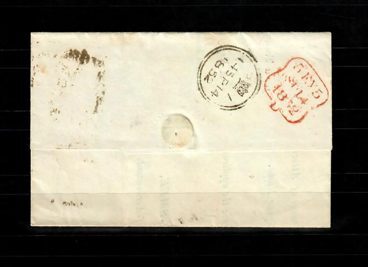 The 1847, 1s is cut close but not touched at bottom, otherwise with very large regular margins and neatly cancelled. The 76 barred numberal issued in 1851 to the London Chief Office for cancelling the bulk of letters collected in the District Post area, does not tie from the 1s postage stamp to the lettersheet, nevertheless it can be confirmed the 1s stamp had originally been used on the cover. Adhesive and envelope are in a very fresh state of preservation.