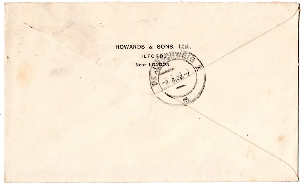1d with perfin H & S on stationery cover with Howards & Sons Ltd. imprint on reverse.