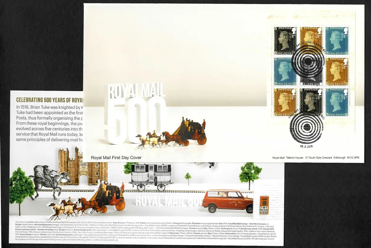 GB 2016: 500 Jahre Royal Mail, Penny red, FDC