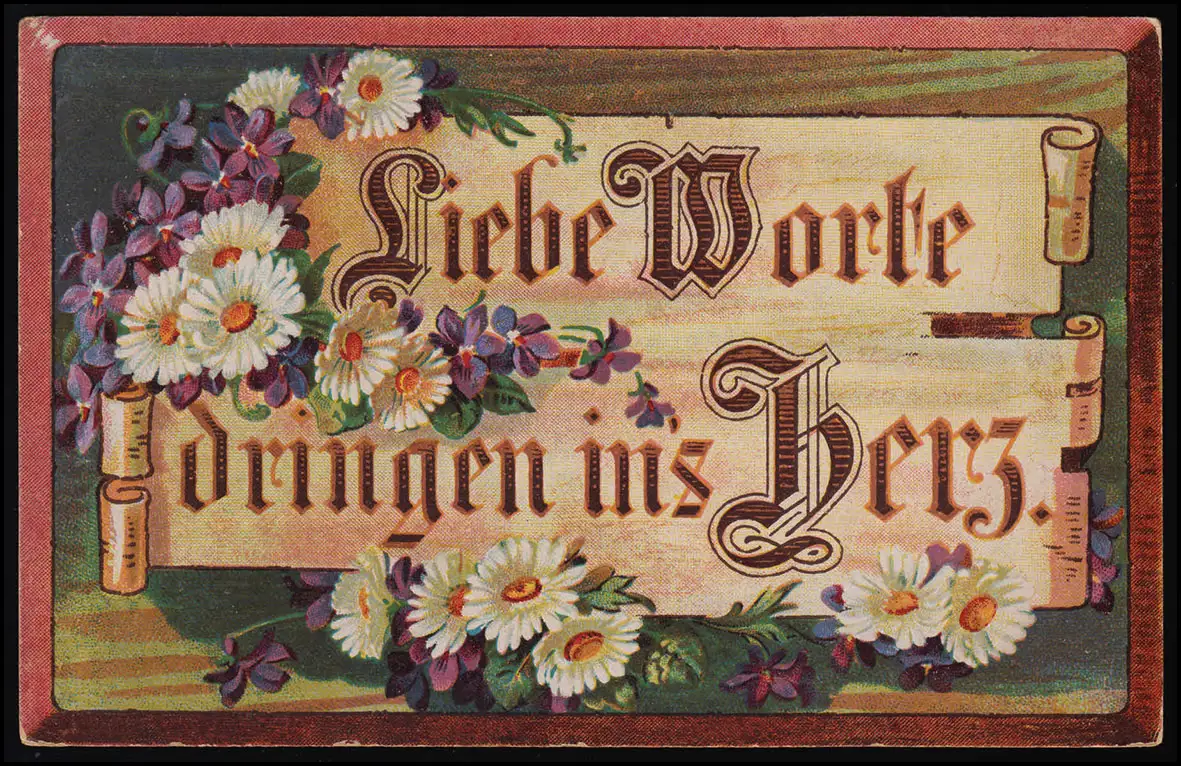 G.B.D. Serie 3390/4 Liebe Worte dringen ins Herz Veilchen Margeriten ungebraucht
