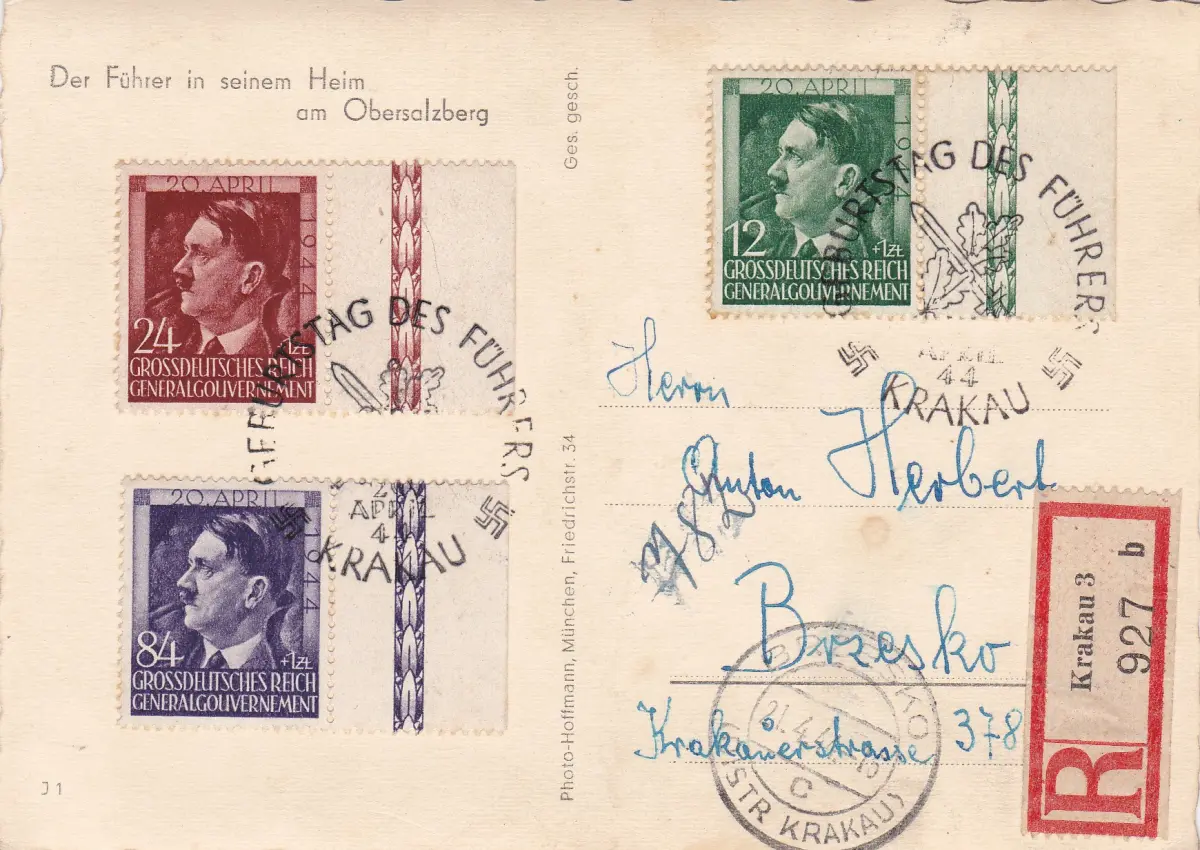 GG: AK Führer in seinem Heim Obersalzberg, Einschreiben, Sonderstempel 1944