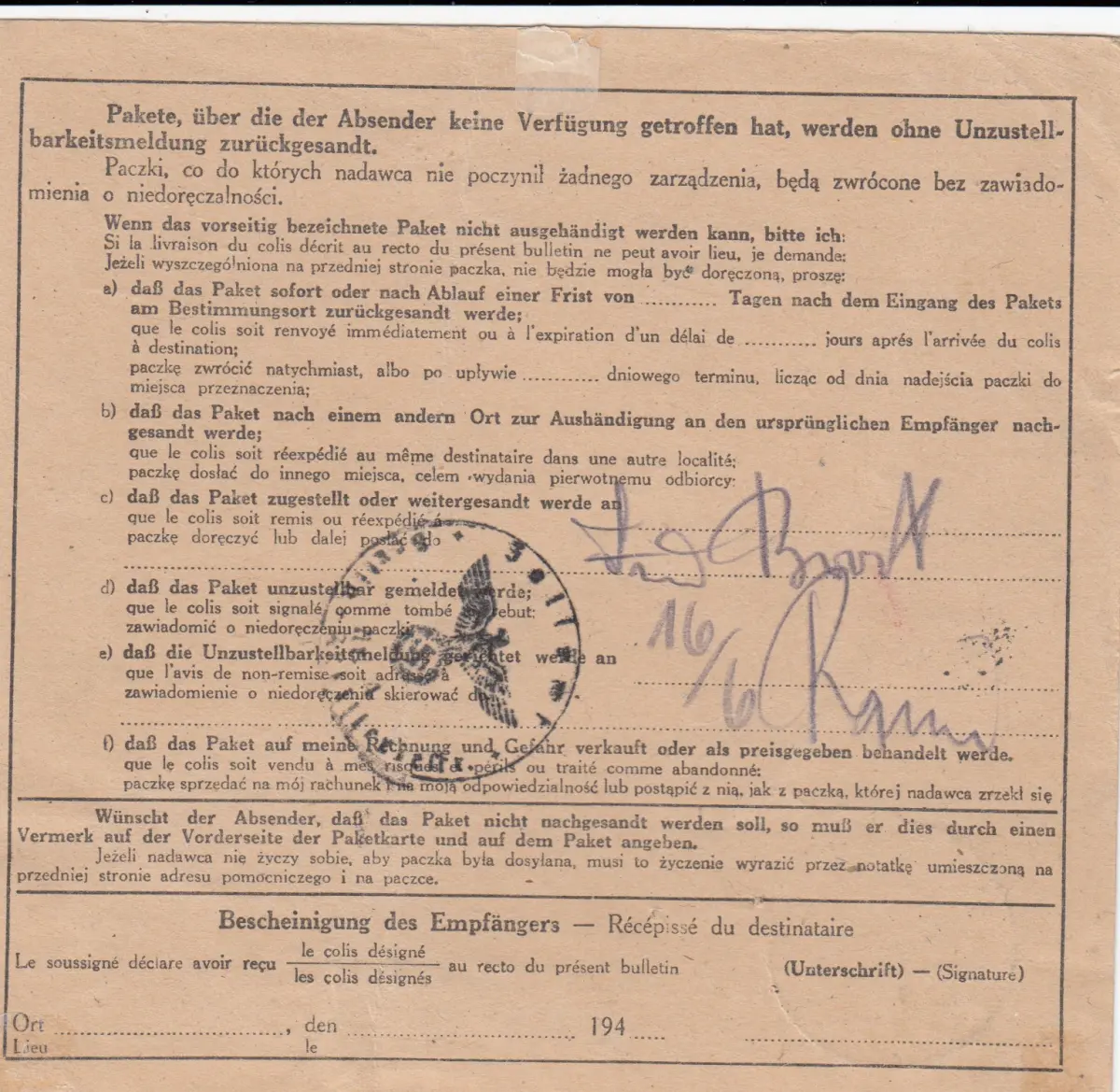 GG Auslandspaketkarte Jadow - Kein Zustellentgelt einziehen, nach Berlin