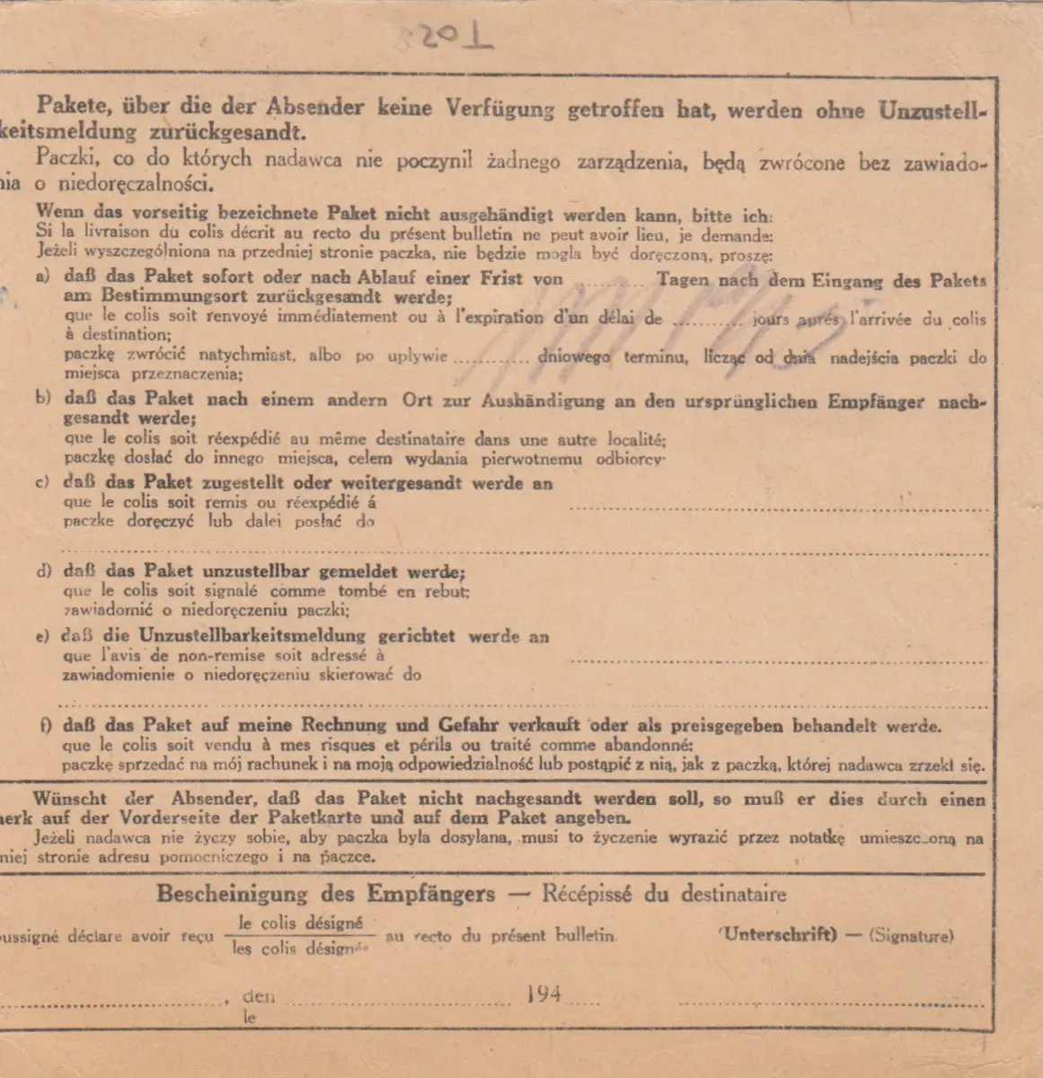 GG Auslandspaketkarte Skierniewice, DRINGEND nach Treuenbritzen - Werk, Stube 31