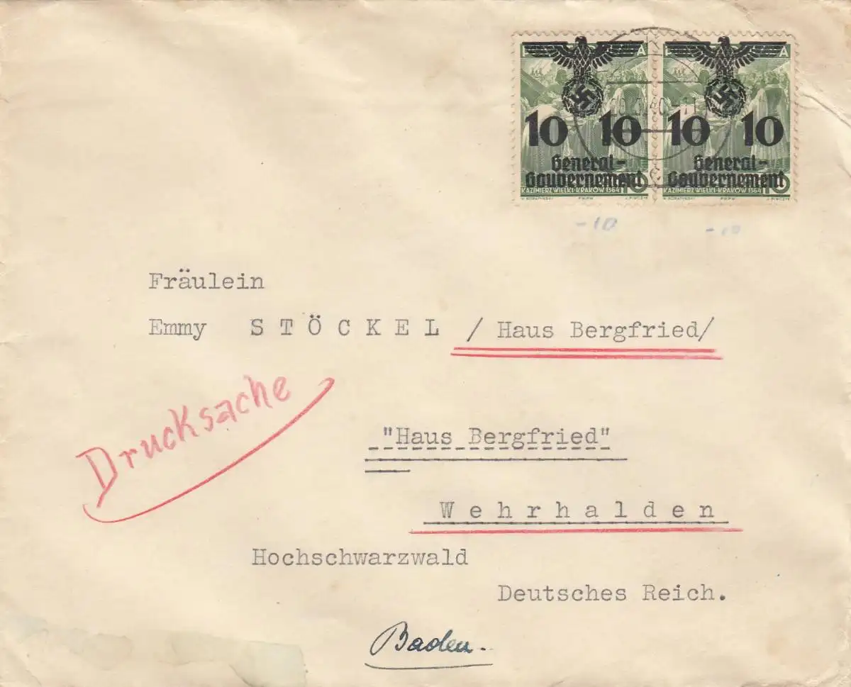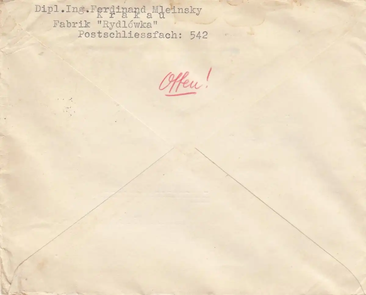 GG: Brief aus Krakau - Fabrik Rydlowka - nach Wehrhalden