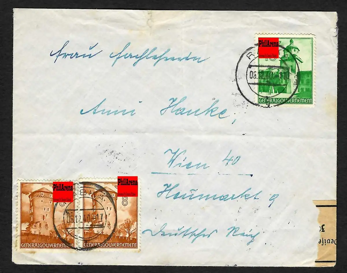Für mehr Informationen siehe Scan: Das Generalgouvernement war dem deutschen Reich nicht angegliedert und war zoll- und devisenrechtlich ein eigenes Land. Für den Versand von Briefmarken oder Geld etc. über 20RM musste eine devisenrechtliche Genehmigung beantragt werden. Daher gab es auch ab und zu eine Devisenüberwachung im Postversand.