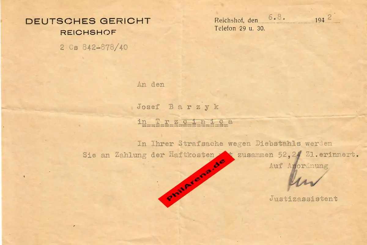 GG: Deutsches Gericht Reichshof nach Trzcinica: Strafsache wegen Diebstahls 1942