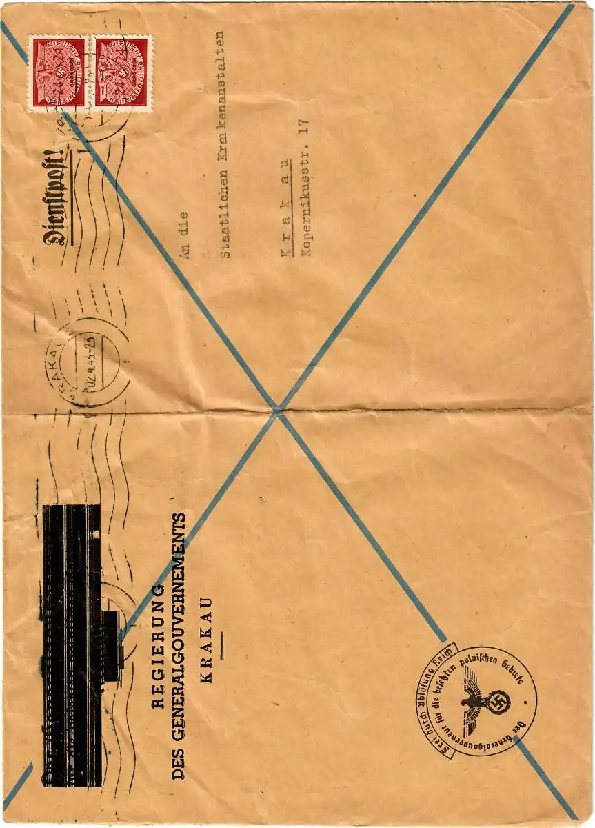 GG Dienst 2. Gew. Stufe, portogerechte MeF, Regierung an Krankenanstalten Krakau