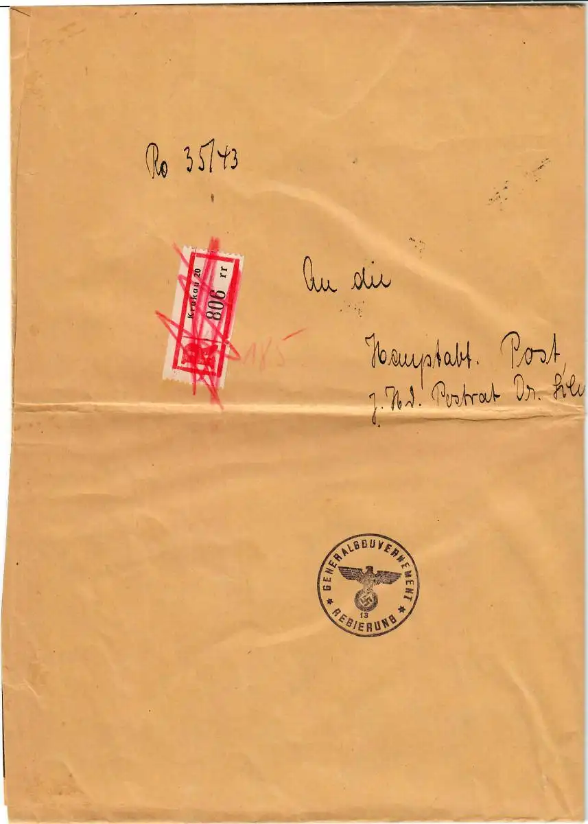 GG Dienst Großbrief portogerechte MiF 2. Gew.Stufe Krakau an Postrat Dr. Schmidt