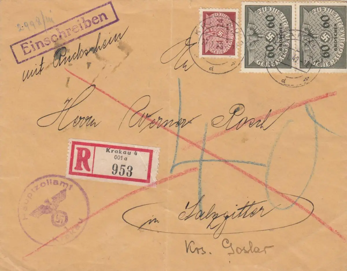 GG: Dienst: MiF RÜCKSCHEIN Einschreiben Hauptzollamt Krakau nach Salzgitter