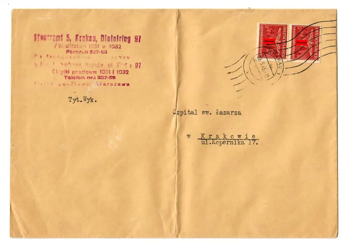 GG: Dienstbrief Steueramt Krakau an Spital in Krakau, seltener Stempel