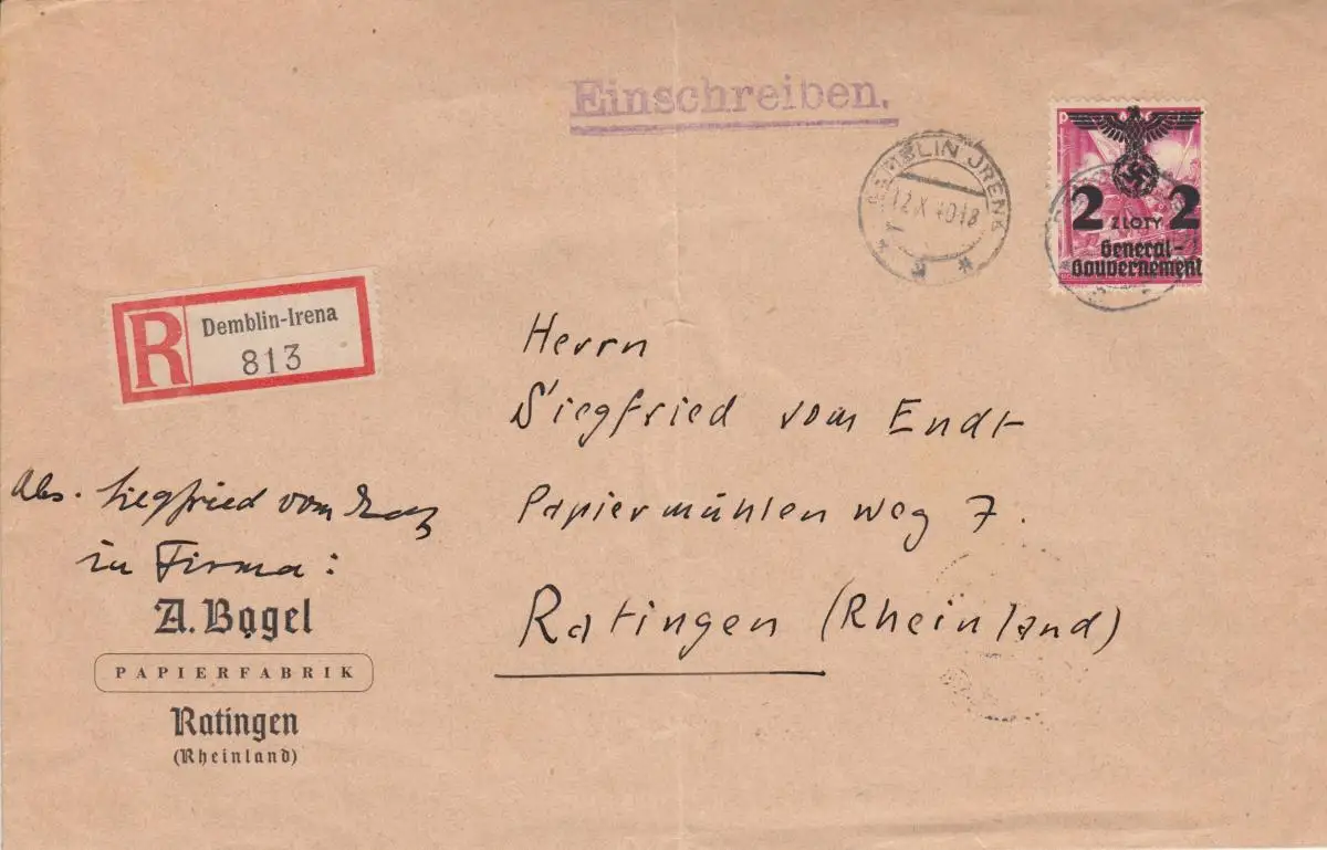 GG Einschreiben Demblin-Irena nach Ratingen, schöne EF