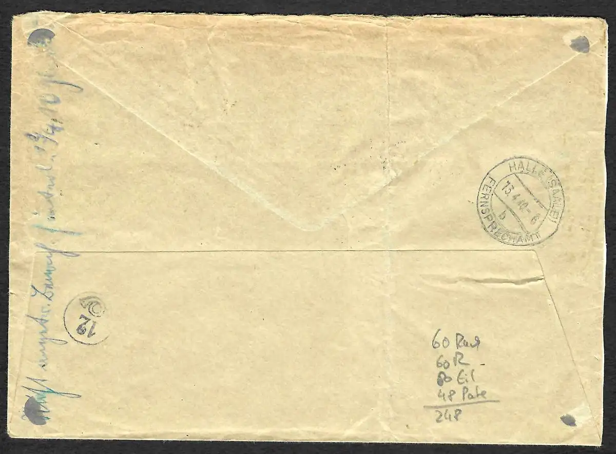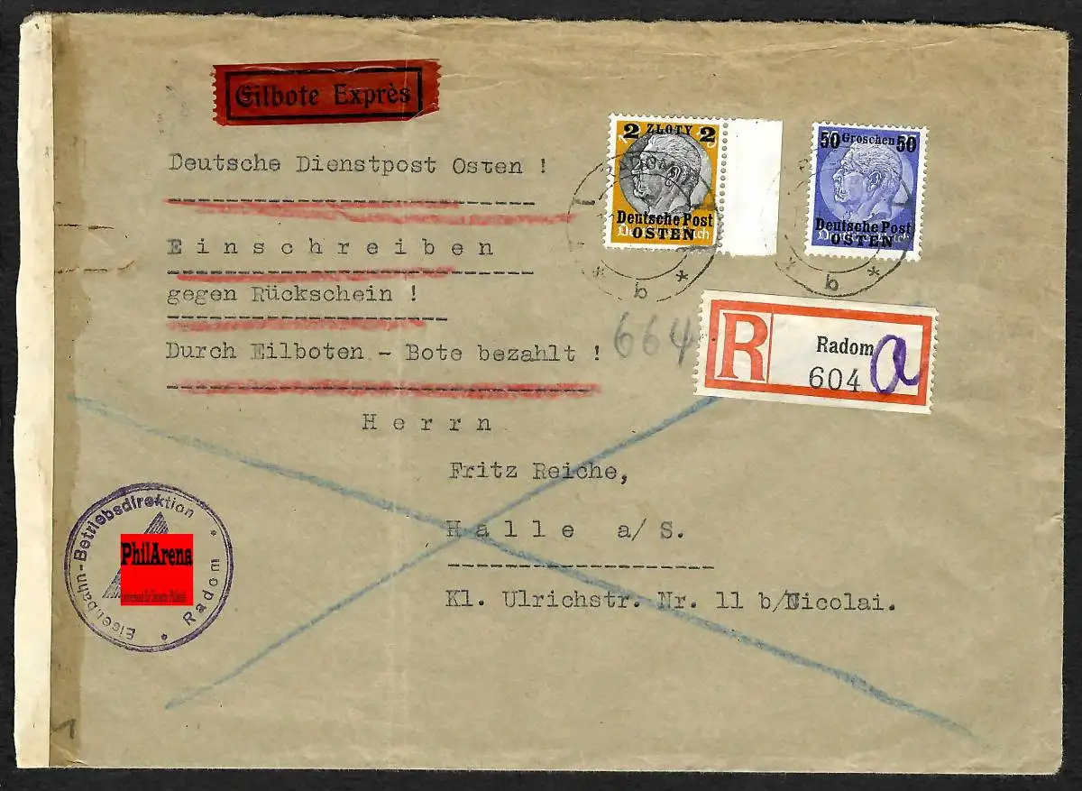 GG: Einschreiben/Eilbote-Rückschein von Radom nach Halle 13.4.40