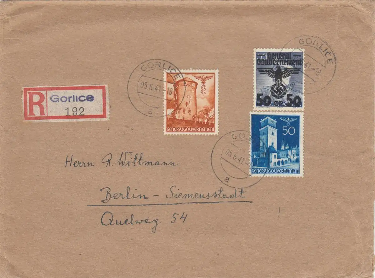 GG: Einschreiben Gorlice nach Berlin, portogerecht