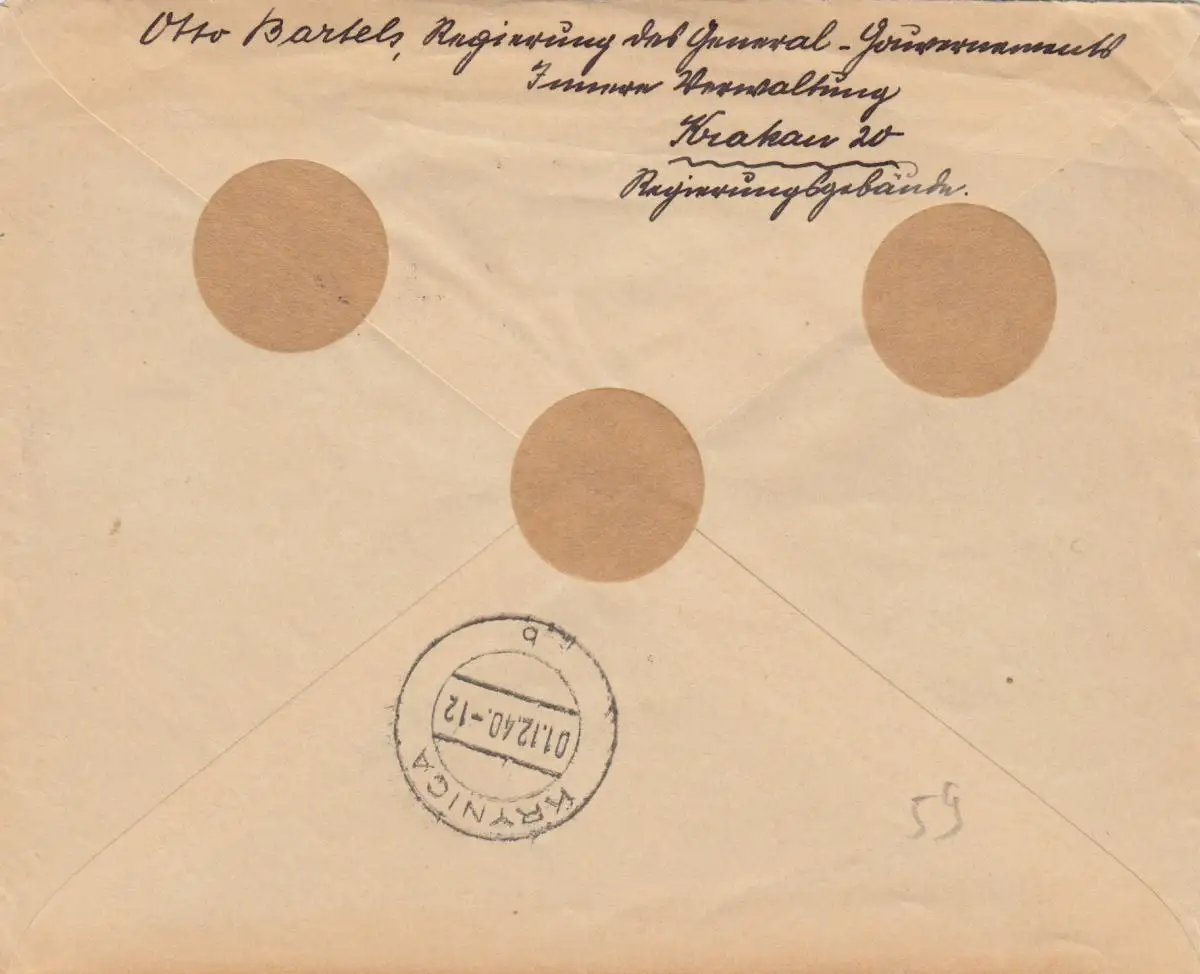 GG: Einschreiben Krakau 20, falsche Stempeleinstellung 30.11.49 statt 1940