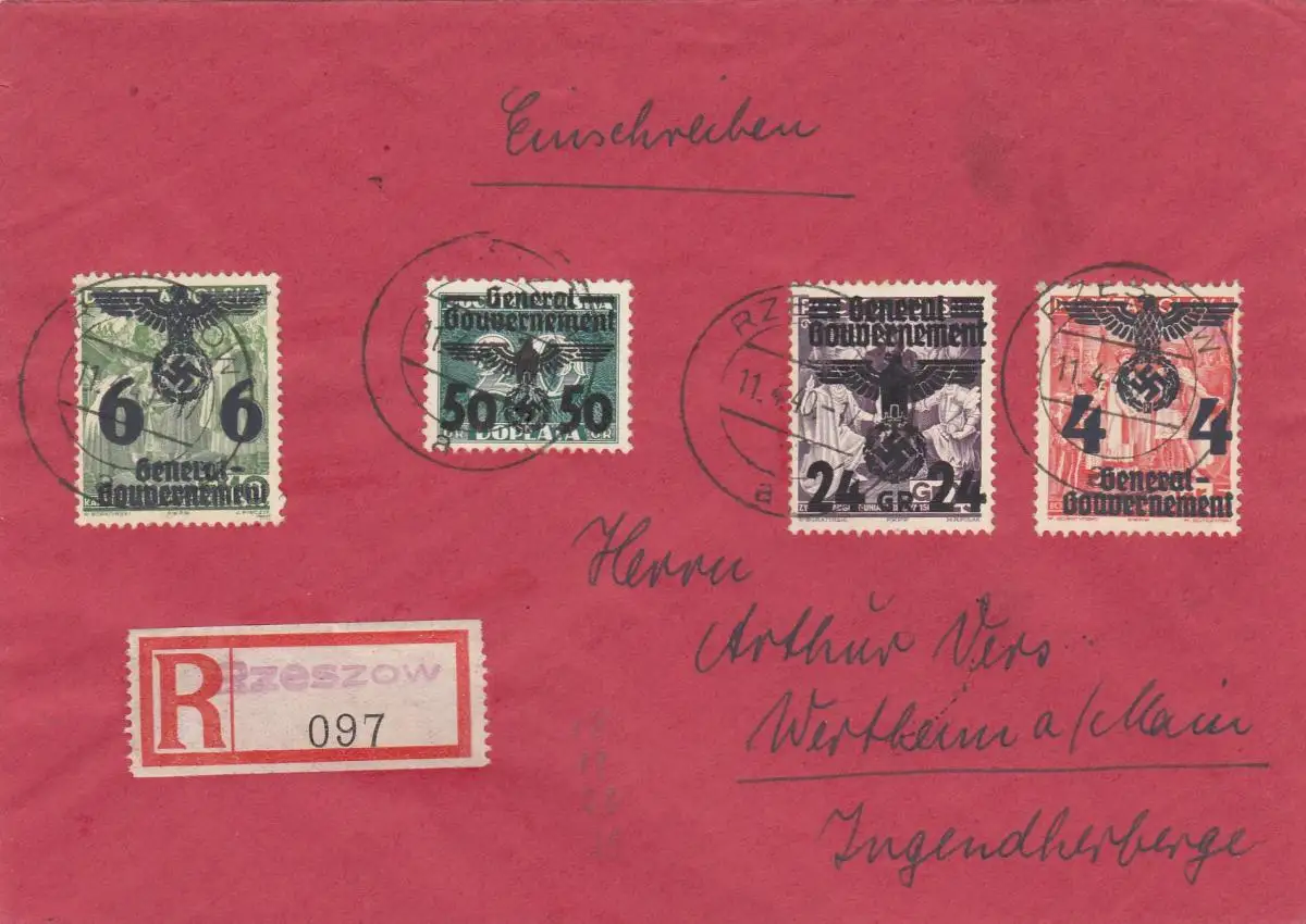 GG: Einschreiben Rzeszow nach Wertheim, portogerechte MiF