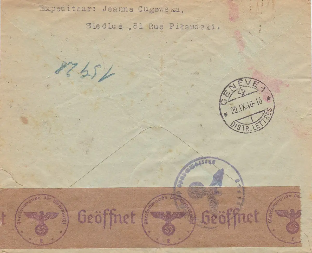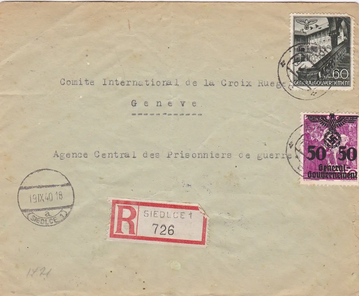 GG: Einschreiben Siedlce an Rotes Kreuz-Kriegsgefangenen Zentrale/Schweiz