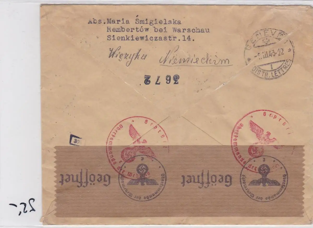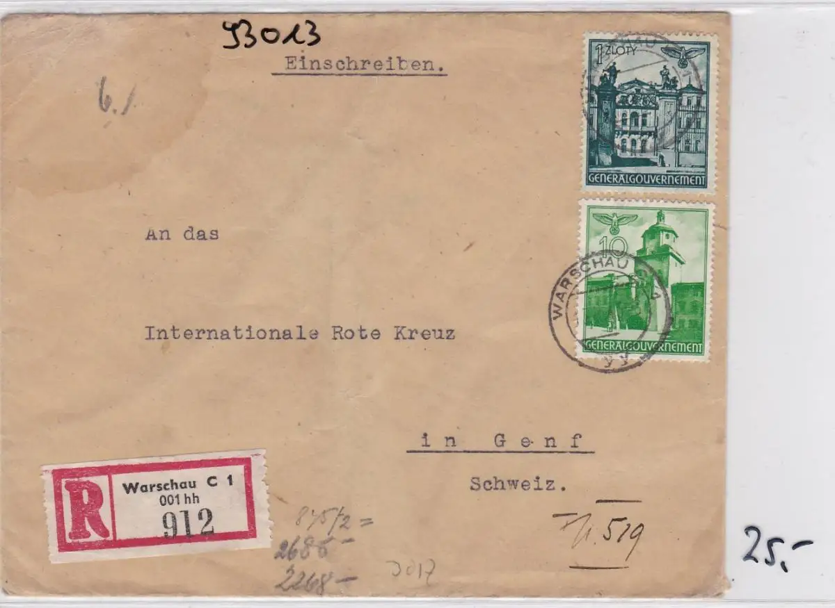 GG: Einschreiben Warschau an Rotes Kreuz- Zentrale/Schweiz