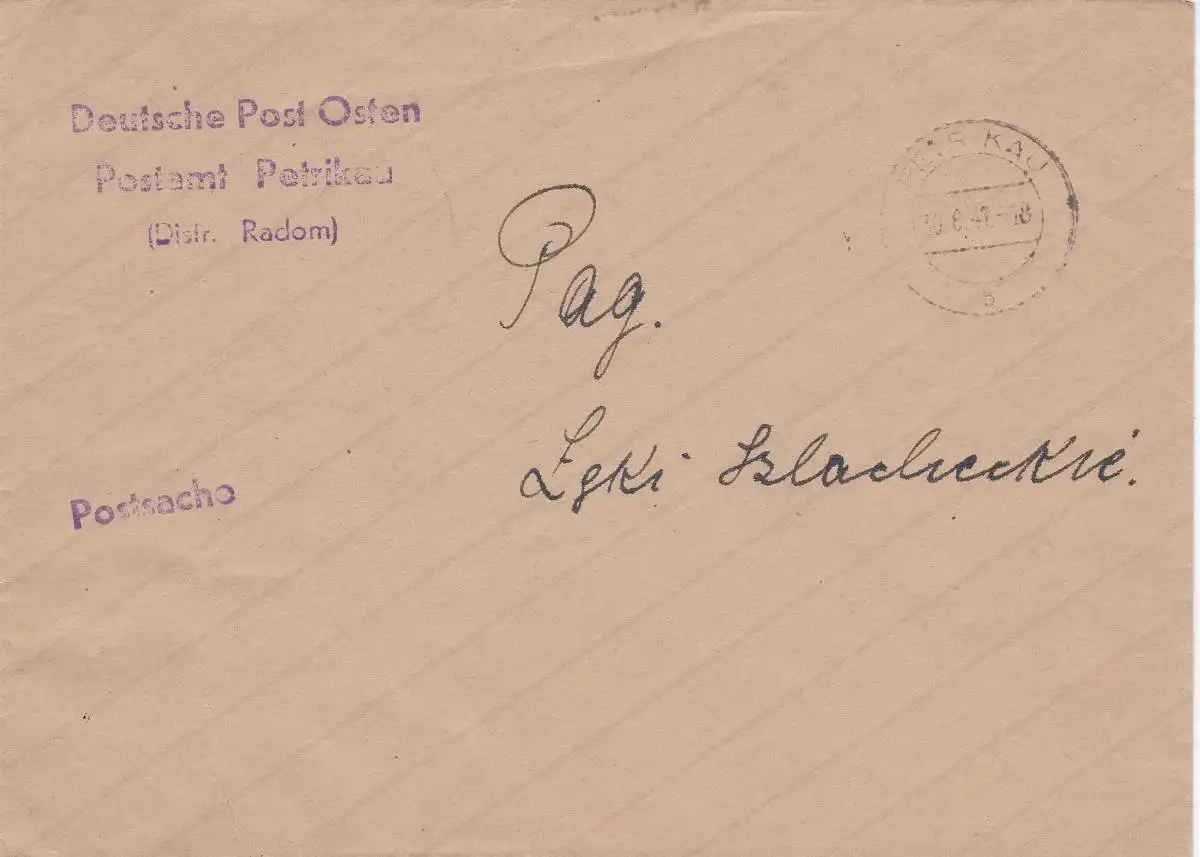 GG: Generalgouvernement 1941 Postsache Postamt Petrikau