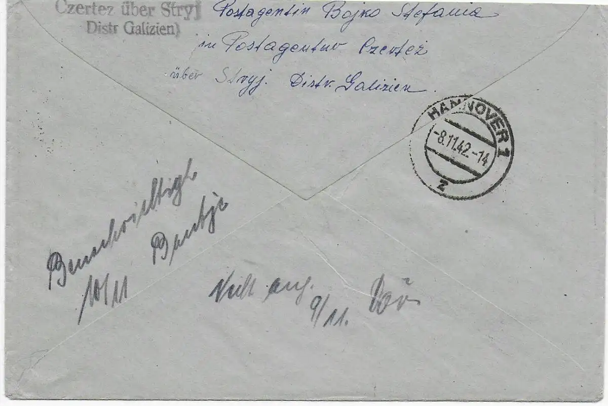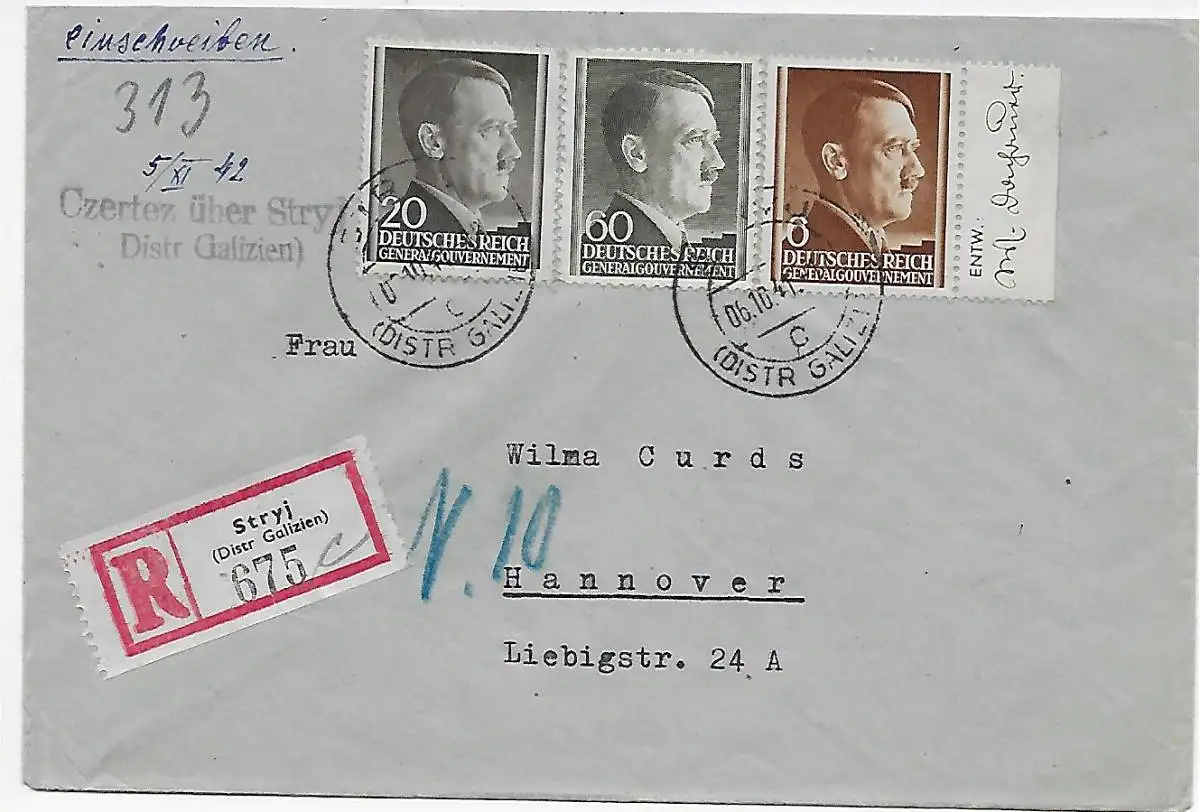 GG: Generalgouvernement Einschreiben Stryj, Postagentur Czertez/Galizien 1941