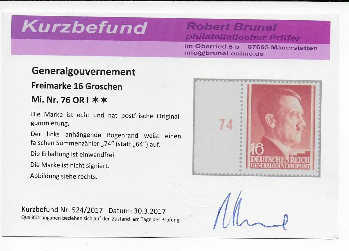 Ein Angebot in Briefmarken Generalgouvernement - 2.049 weitere Angebote in dieser Kategorie