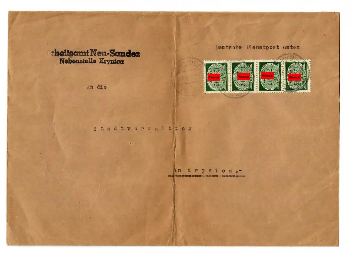 GG: Groß-Dienstbrief Arbeitsamt Neu-Sandez nach Krynica