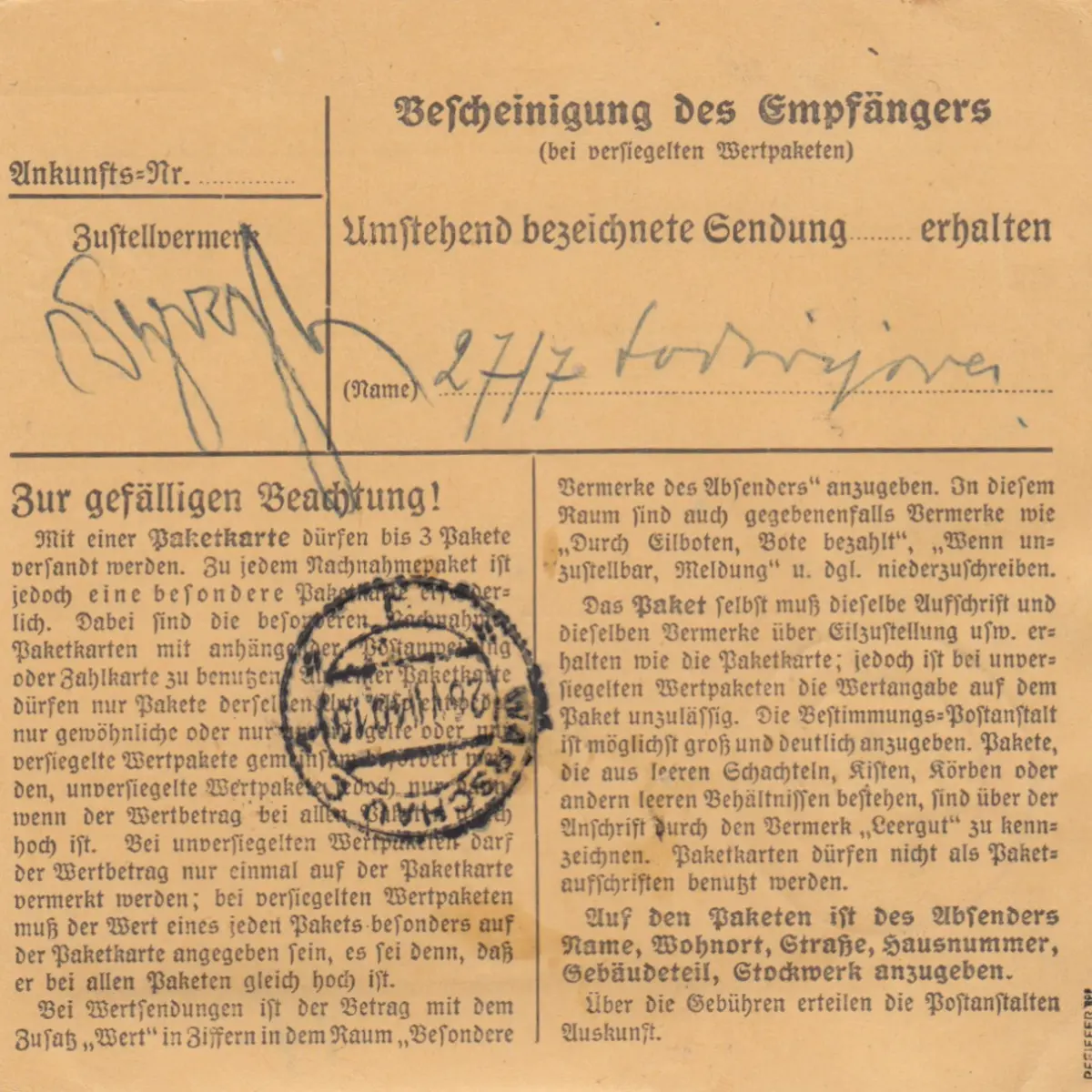 GG: Inlandspaketkarte Sanok - Warschau, 60Gr MeF