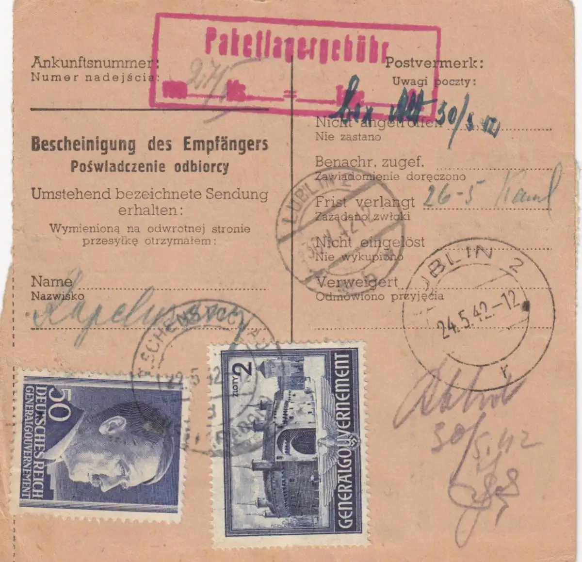 GG Inlandspaketkarte Tschenstochau Nachnahme, offener Wert, Paketlagergebühr