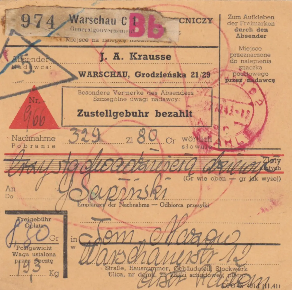 GG Inlandspaketkarte Warschau - Selbstbucher - Gebühr Bezahlt Stempel, Sperrgut