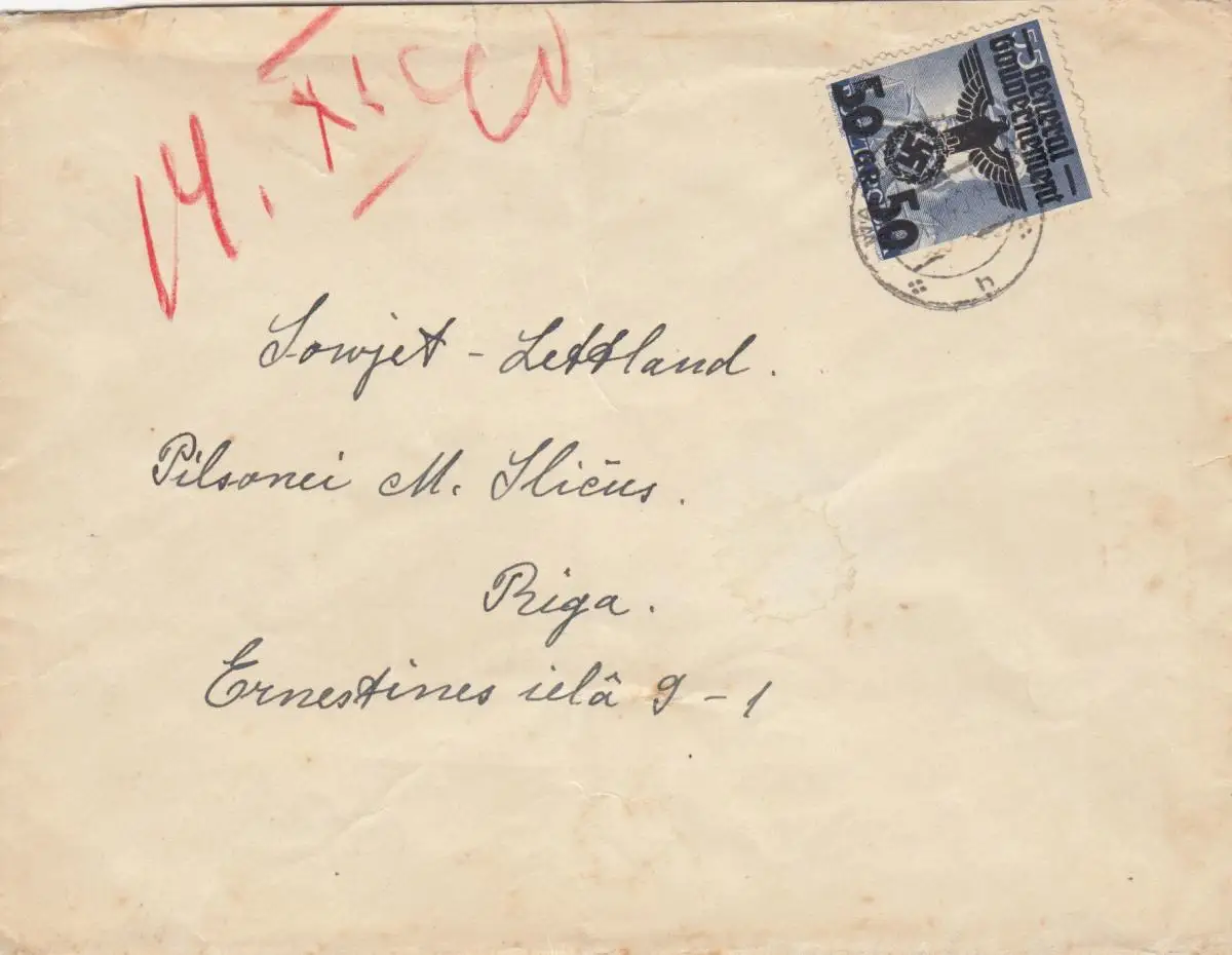 GG Lettland: Warschau nach Riga, EF auf Brief, portogerecht, Zensur