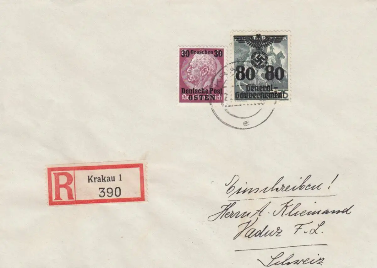 GG Liechtenstein: Einschreiben Krakau, portogerecht nach Vaduz