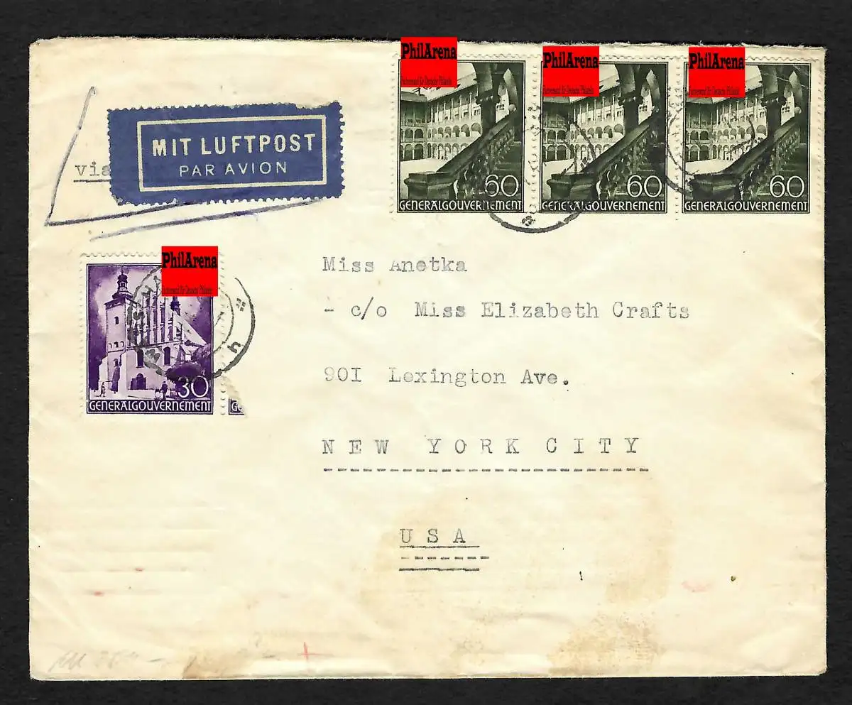 GG: Luftpost Warschau nach New York , portogerecht 1941
