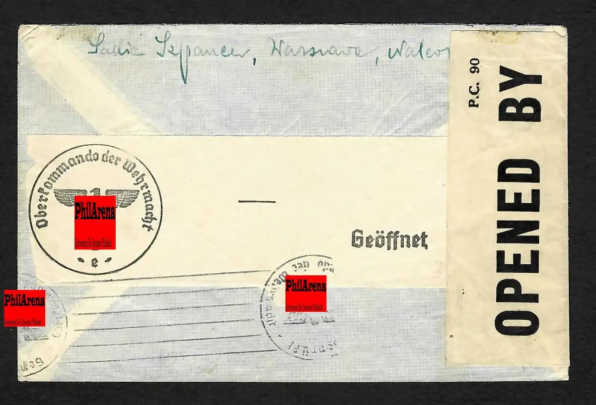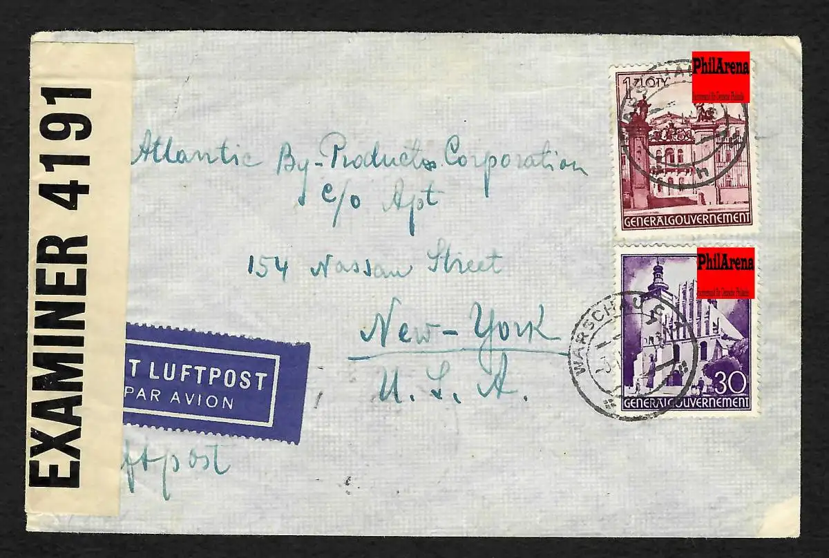GG: Luftpost Warschau nach New York, portogerecht 1941