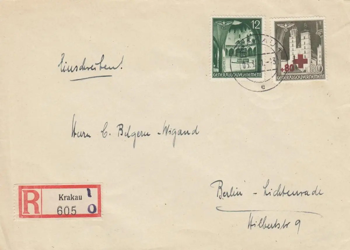 GG: MiF 80Gr. Einschreiben Krakau nach Berlin