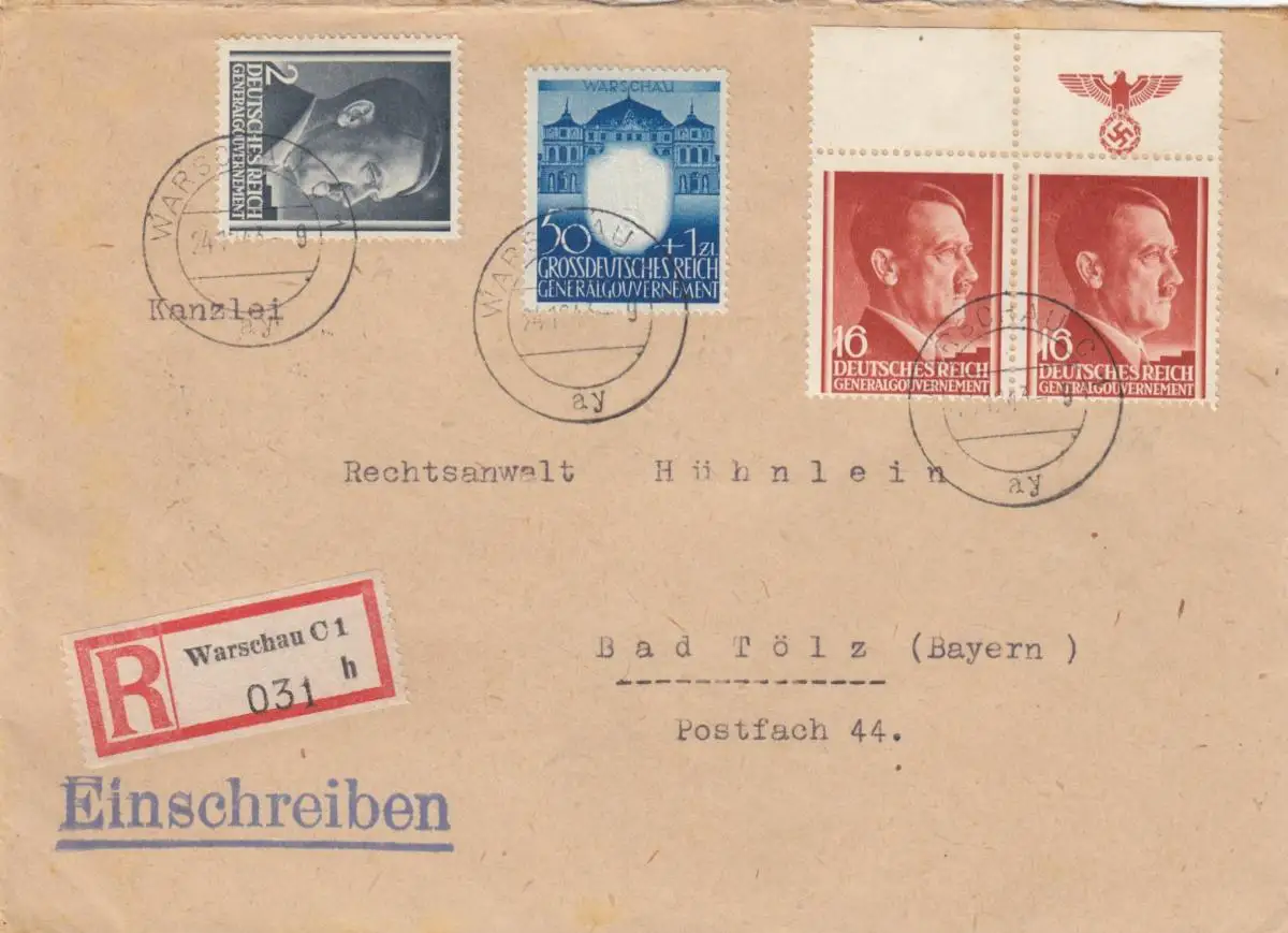GG: MiF Einschreiben Warschau nach Bad Tölz, portogerecht, HHZ