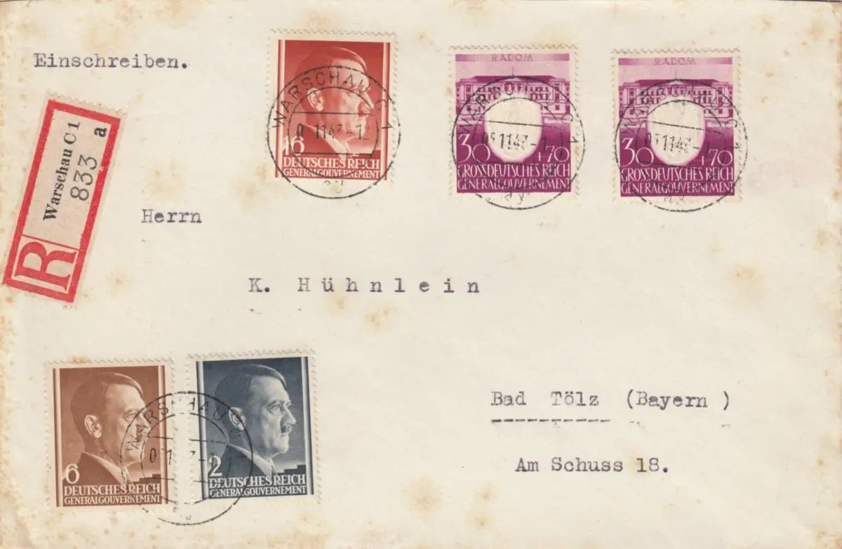 GG: MiF Wappen portogerecht Einschreiben Warschau nach Bad Tölz