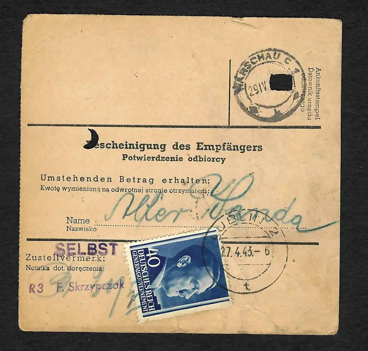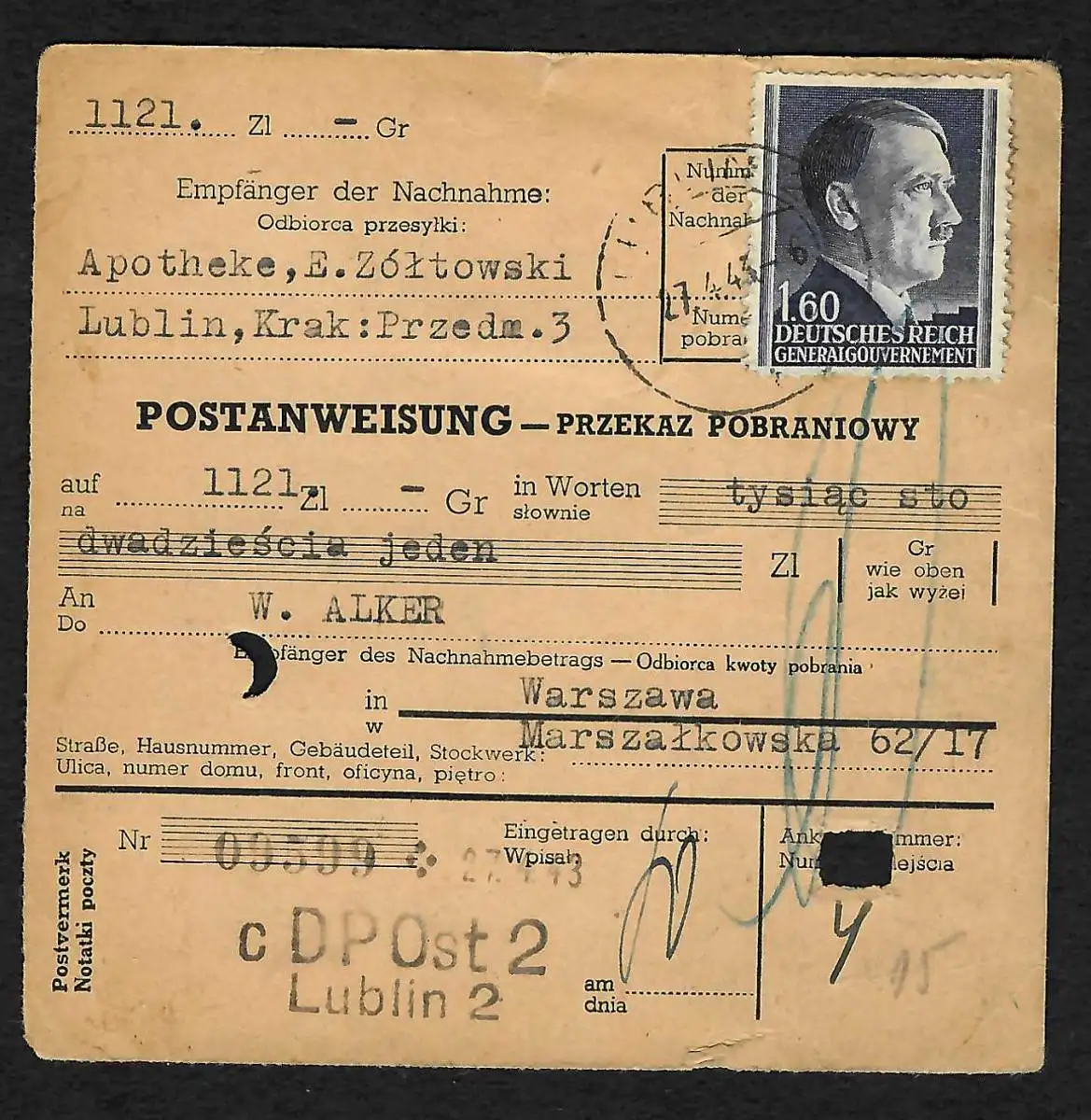 Aus einer Sammlung Post-Zahlungssysteme im Generalgouvernement