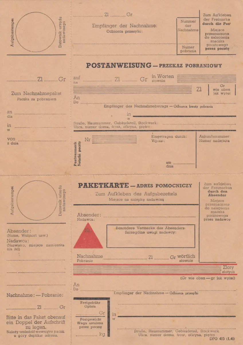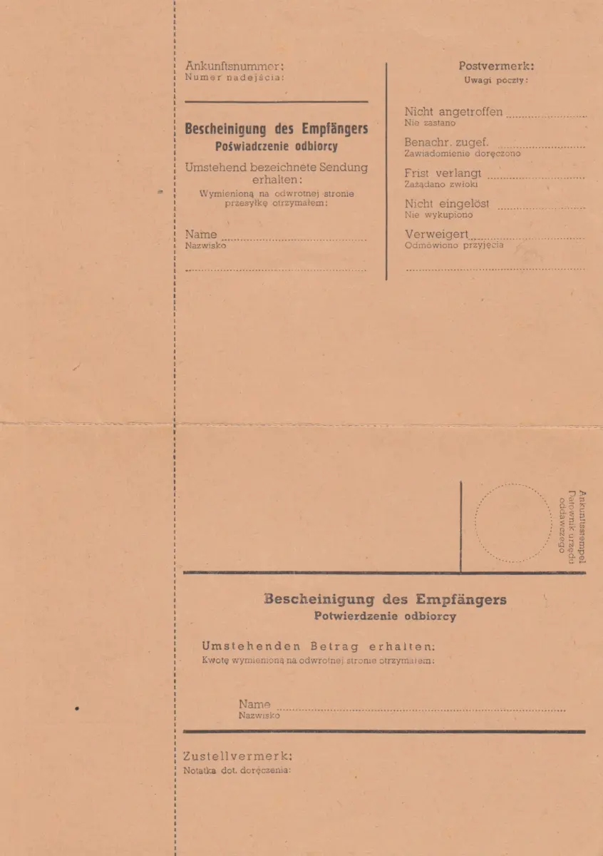 GG: Postanweisung mit NN-Paketkarte blanko Formular, zusammenhängend