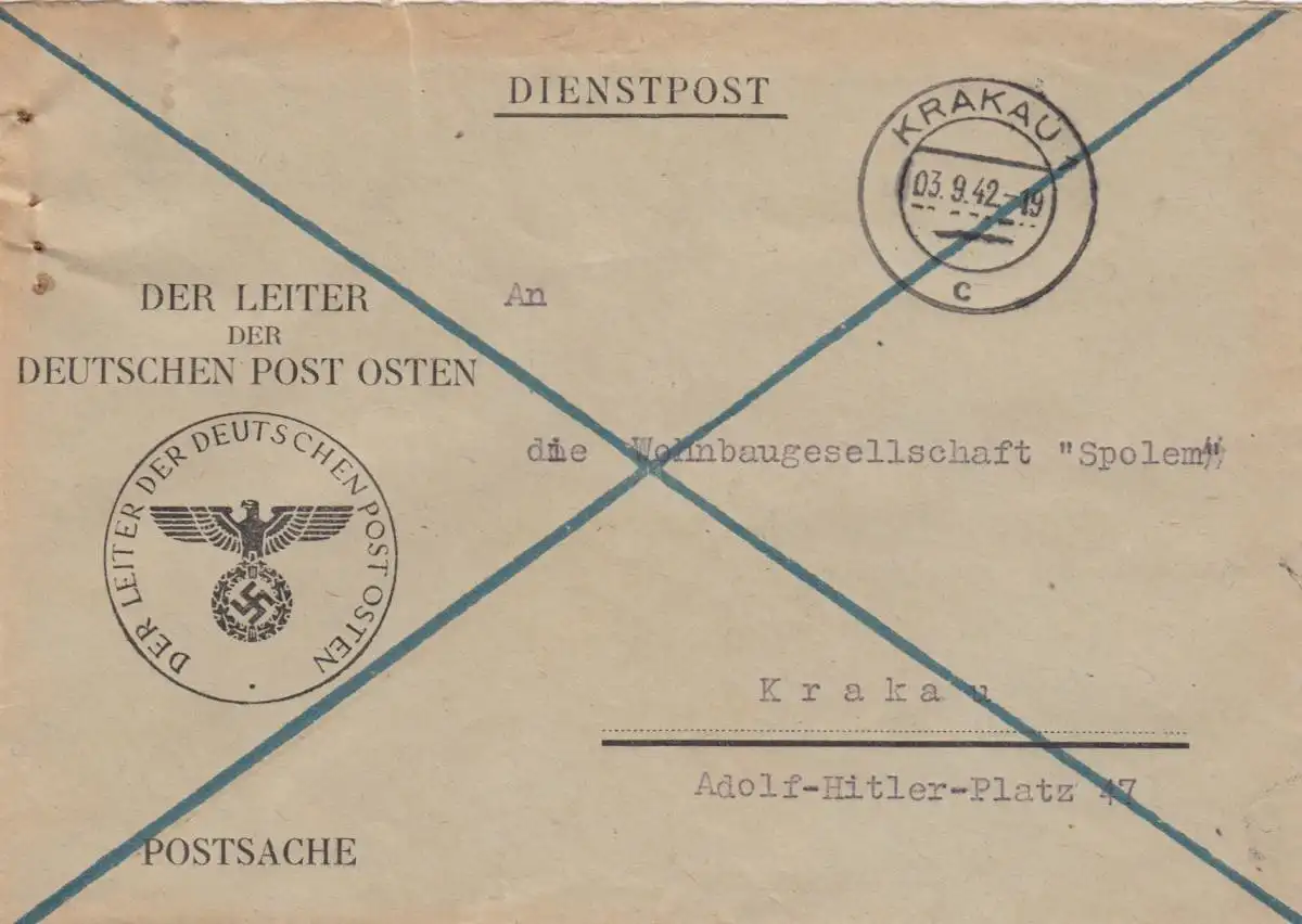 GG: Postsache Dienstpost der Leiter der DPO Krakau, seltener Umschlag