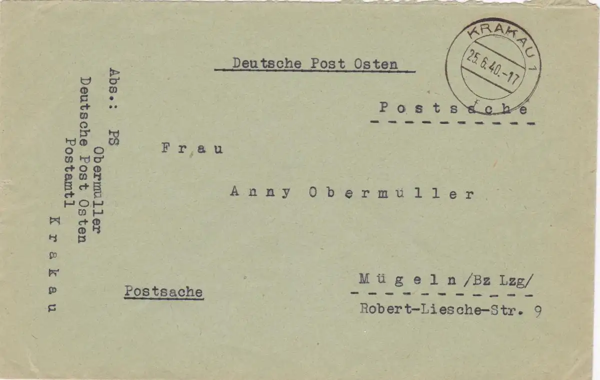 GG: Postsache Postamt 1 Krakau nach Mügeln