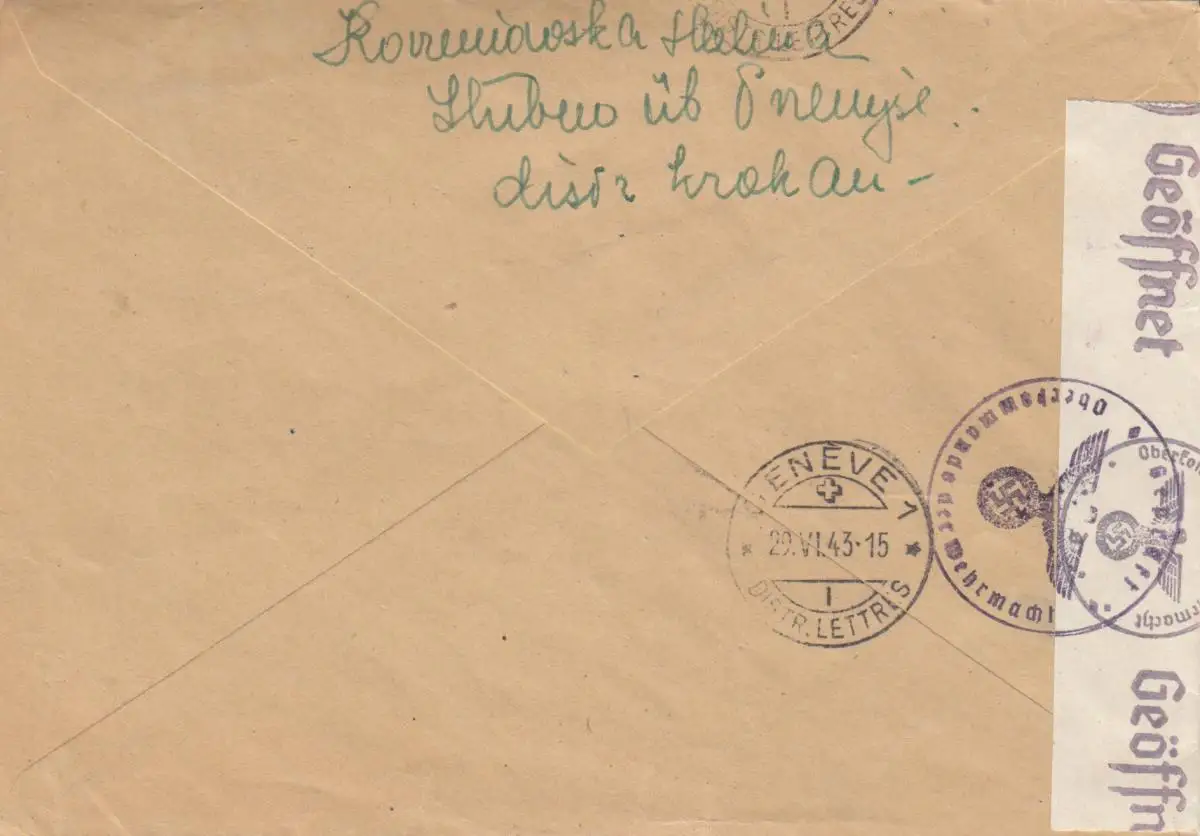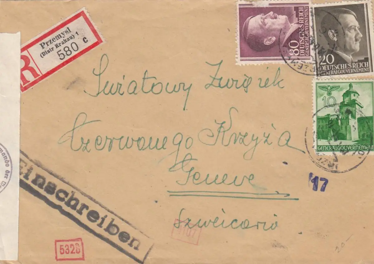 GG Schweiz Einschreiben Przemysl nach Genf, portogerecht, Zensur