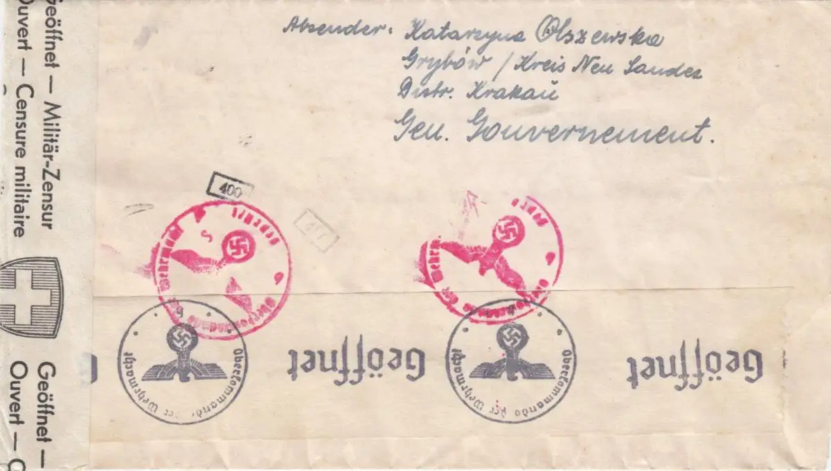 GG Schweiz: Interniertenpost Krakau - Heinrichsbad, 2x Zensur