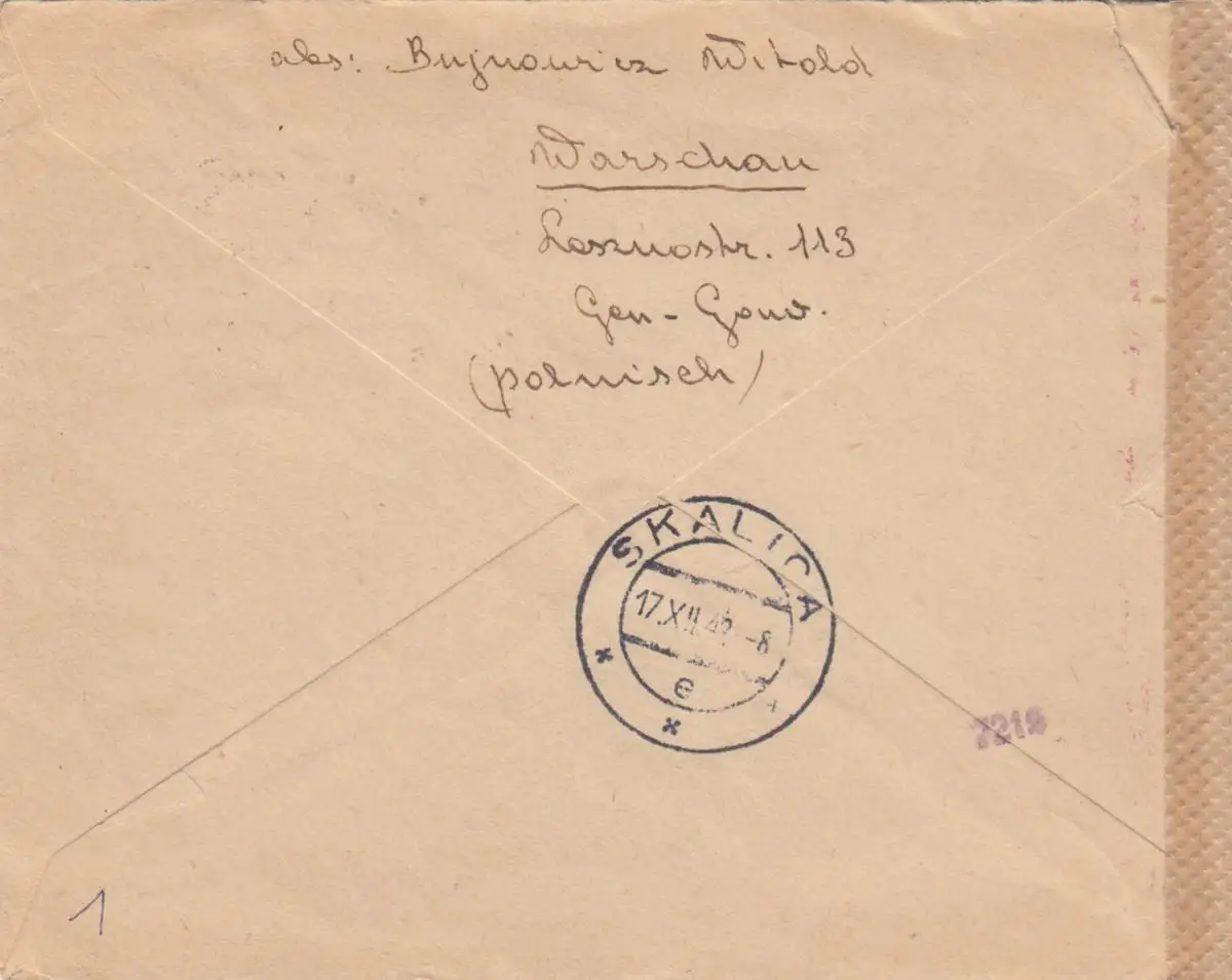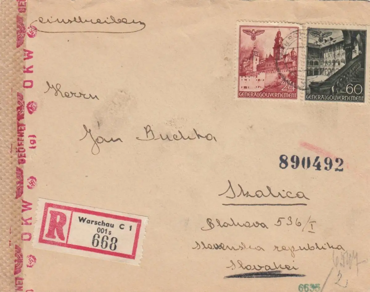 GG Slowakei: Einschreiben Warschau nach Skalica, Zensur