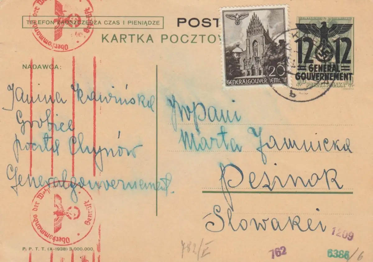 GG Slowakei: Ganzsache Grobice - Pesinor, portogerecht, Zensur, Bug