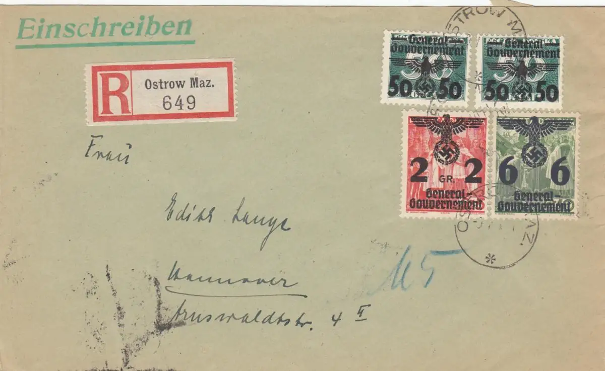 GG: portogerechte MiF MiNr. 38 von Ostrow nach Hannover