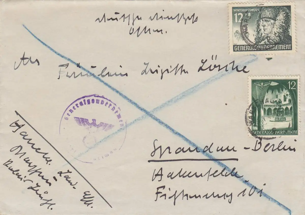 GG: portogerechte MiF der 12Gr Marke Warschau nach Spandau-Berlin