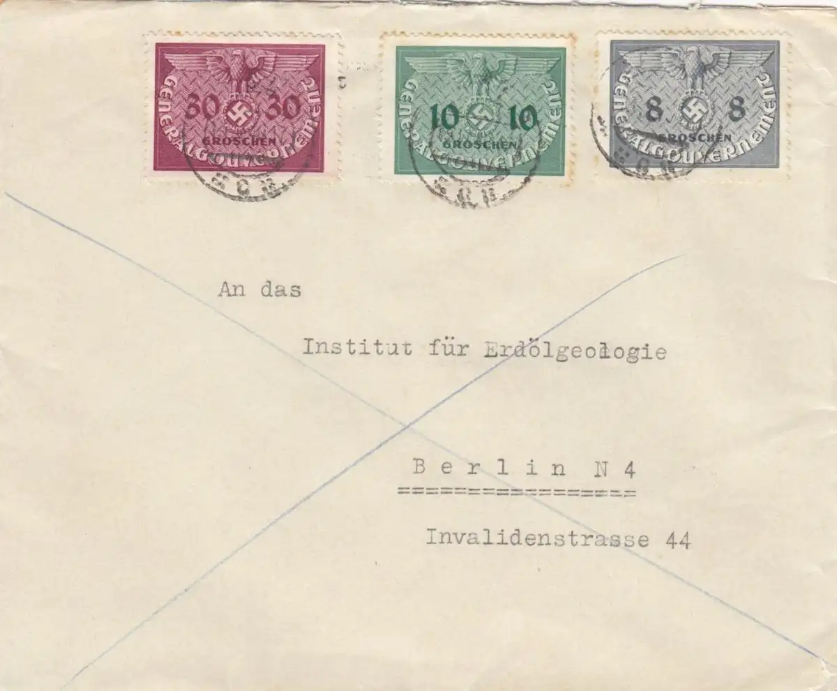 GG: portogerechter Brief der 2. Gew. Stufe von Jaslo-Bodenforschung nach Berlin