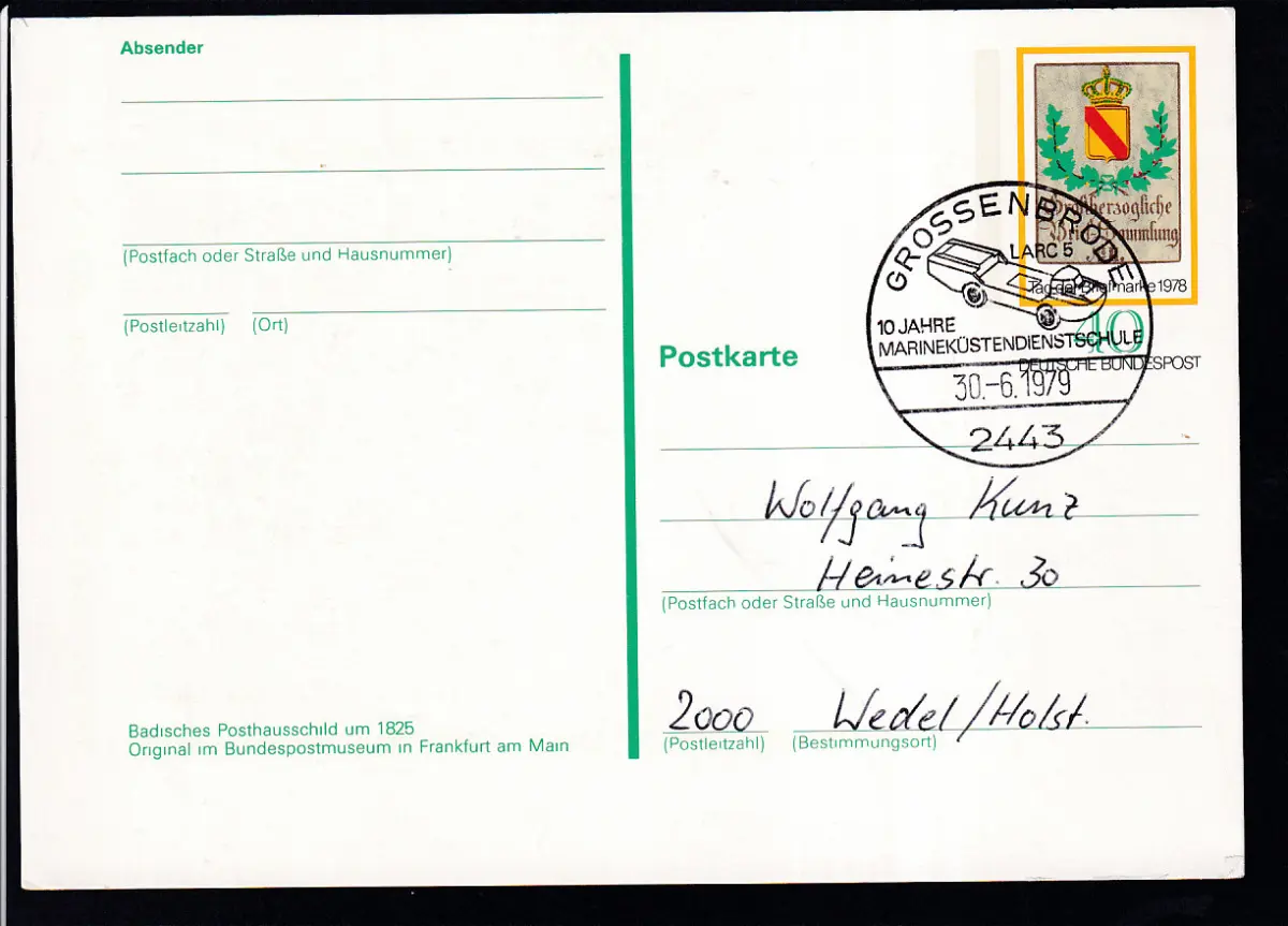 GROSSENBRODE 2443 10 Jahre MARINEKÜSTENDIENSTSCHULE 30.6.1979 auf Ganzsache