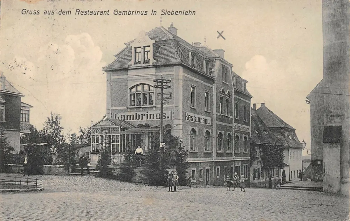 GRUSS aus dem RESTAURANT GAMBRINUS in SIEBENLEHN AK 1914